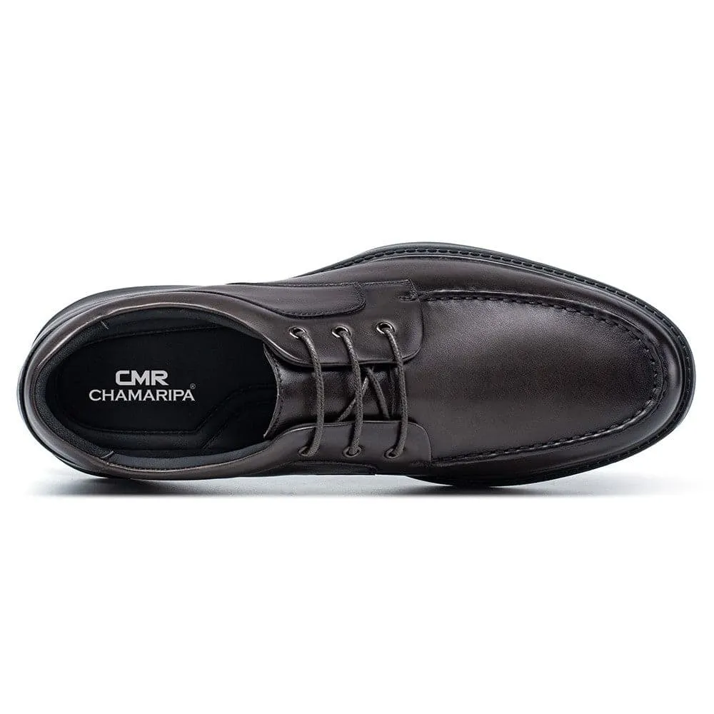 - Features: Step up your fashion game with CMR CHAMARIPA Height Increasing Dress Shoes for Men. Crafted in a sleek dark brown leather finish, these derby shoes not only exude sophistication but also provide a discreet 6 CM / 2.36 inches heel lift for a confident and taller stance. Whether you're attending a formal event, going to the office, or simply want to add a touch of elegance to your everyday look, these high heel dress shoes are the perfect choice. The premium leather construction ensures durability and long-lasting comfort, while the timeless design effortlessly complements any outfit. Enhance your stature without sacrificing style with CMR CHAMARIPA Height Increasing Shoes for Men.