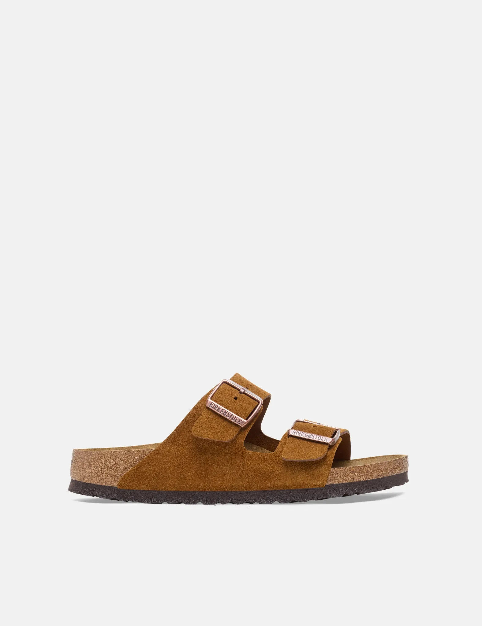 women's Arizona Sandals - narrow fit in mink. The marvellously replicated, never replicated, category-defining, two-strap genius by Birkenstock. A comfort legend and a fashion staple. With adjustable straps and a mystical cork footbed that molds to your foot's shape, the perfect fit is as easy as the timeless design.