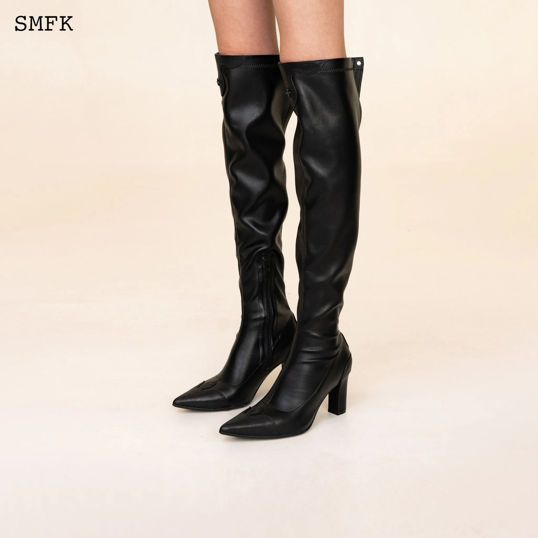 SMFK Compass Cross Black Leather over-the-knee Boots