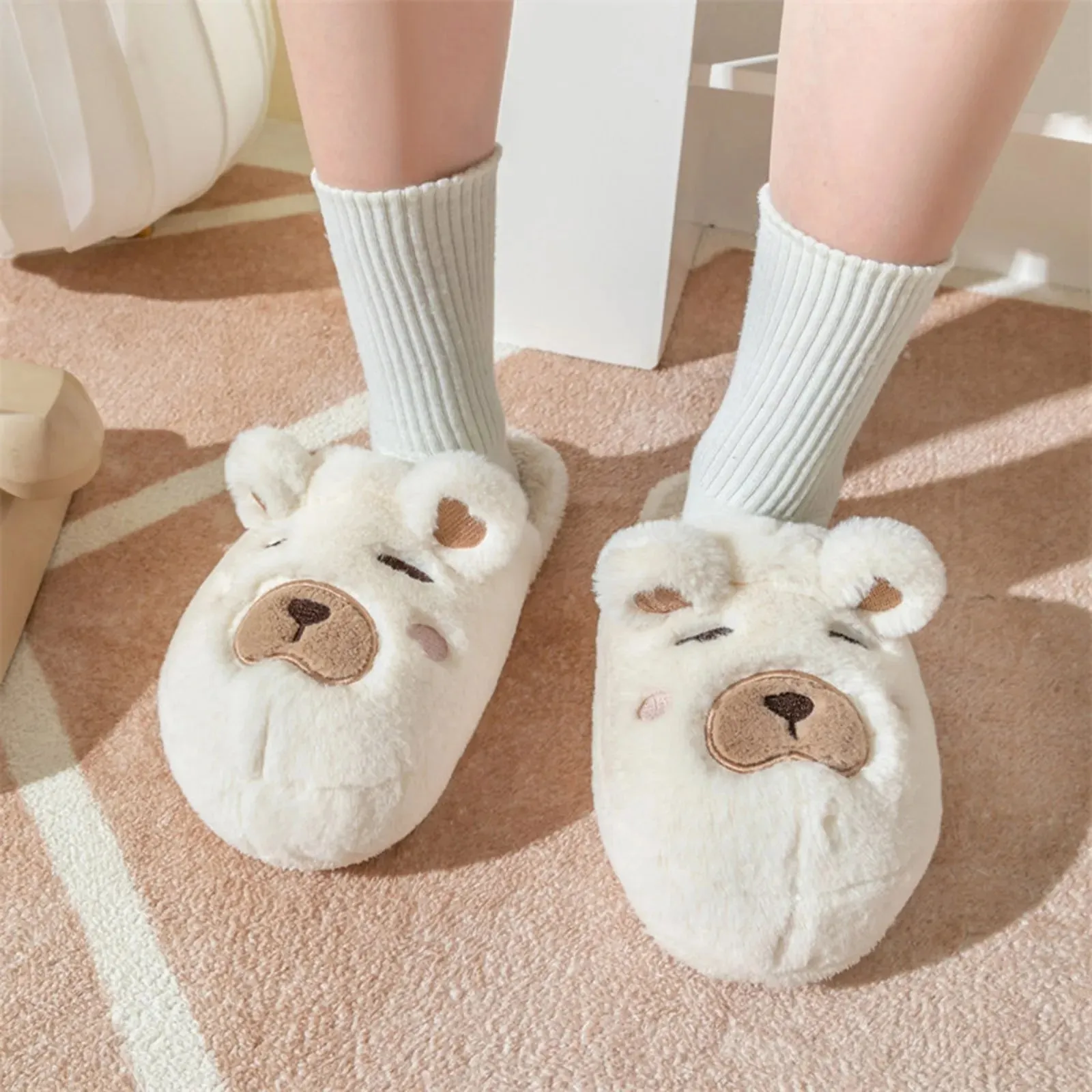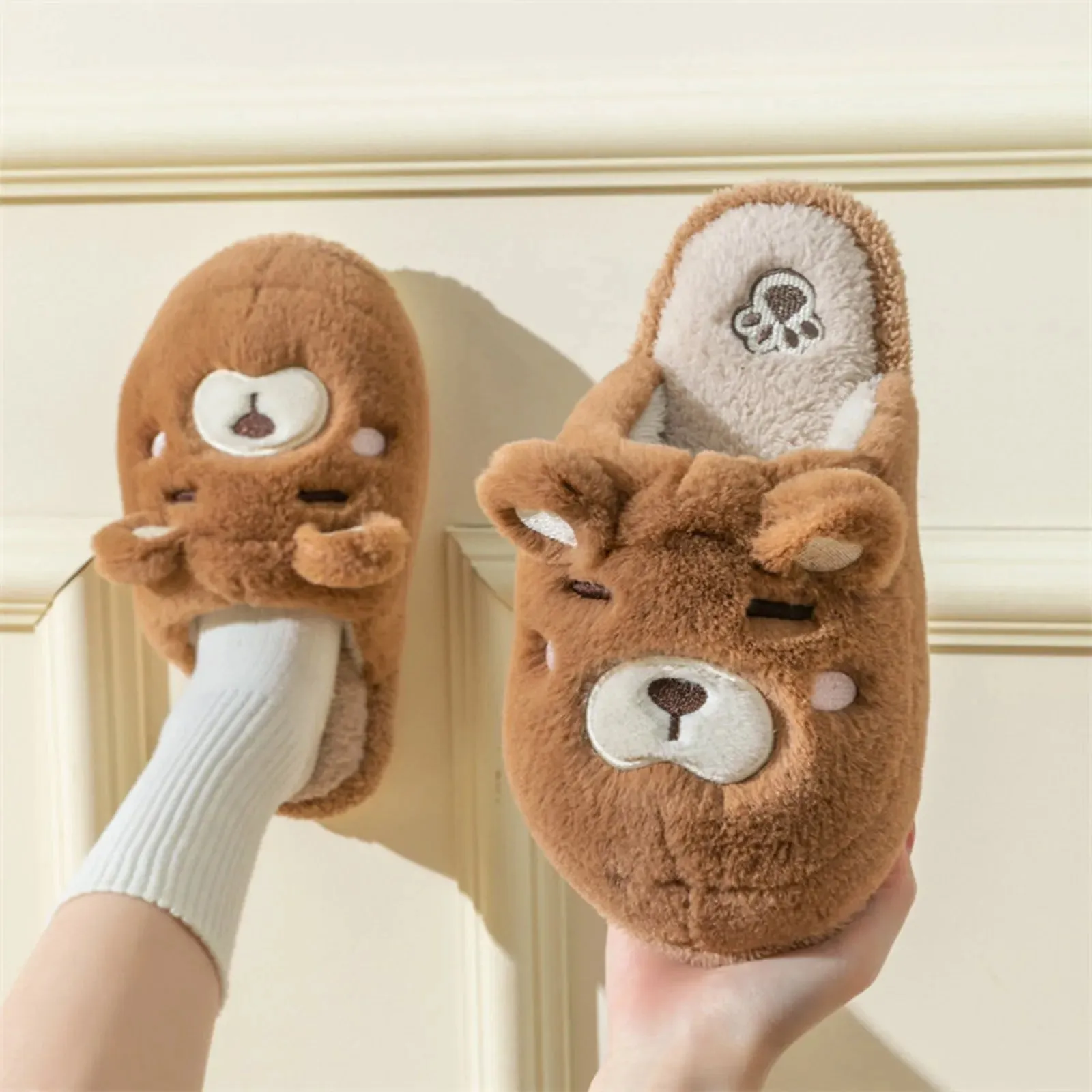 These toasty warm super cute slippers are perfect for lounging around the house or slipping on after a refreshing shower. Made from high quality plush materials and featuring cute animal face design with non-slip ridged soles, easy slip on and off closure, and low flat heel these sweet house slippers are perfect for snuggling up on cold chilly nights. Great couples slippers and an ideal gift for a loved one. Available in 2 colors, Brown and Ivory for your convenience.
