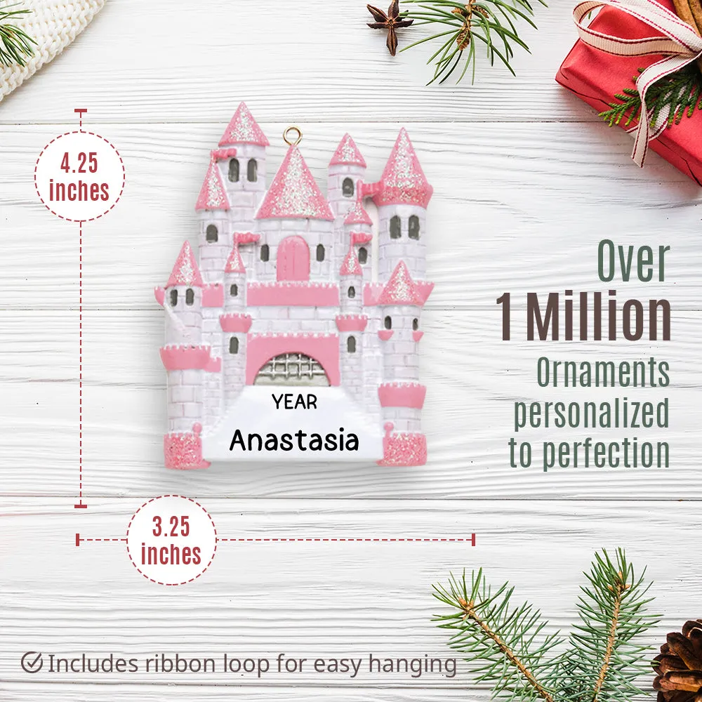 Imagine a world of fairytale charm right in your living room. This princess castle personalized ornament is not just a decoration; it's a gateway to a magical kingdom. A miniature castle straight out of a storybook, each ornament is crafted with intricate details. It's a stunning focal point for your Christmas tree or mantelpiece thanks to its vibrant colors and shimmering accents.- Bring magical kingdom vibes into your home.