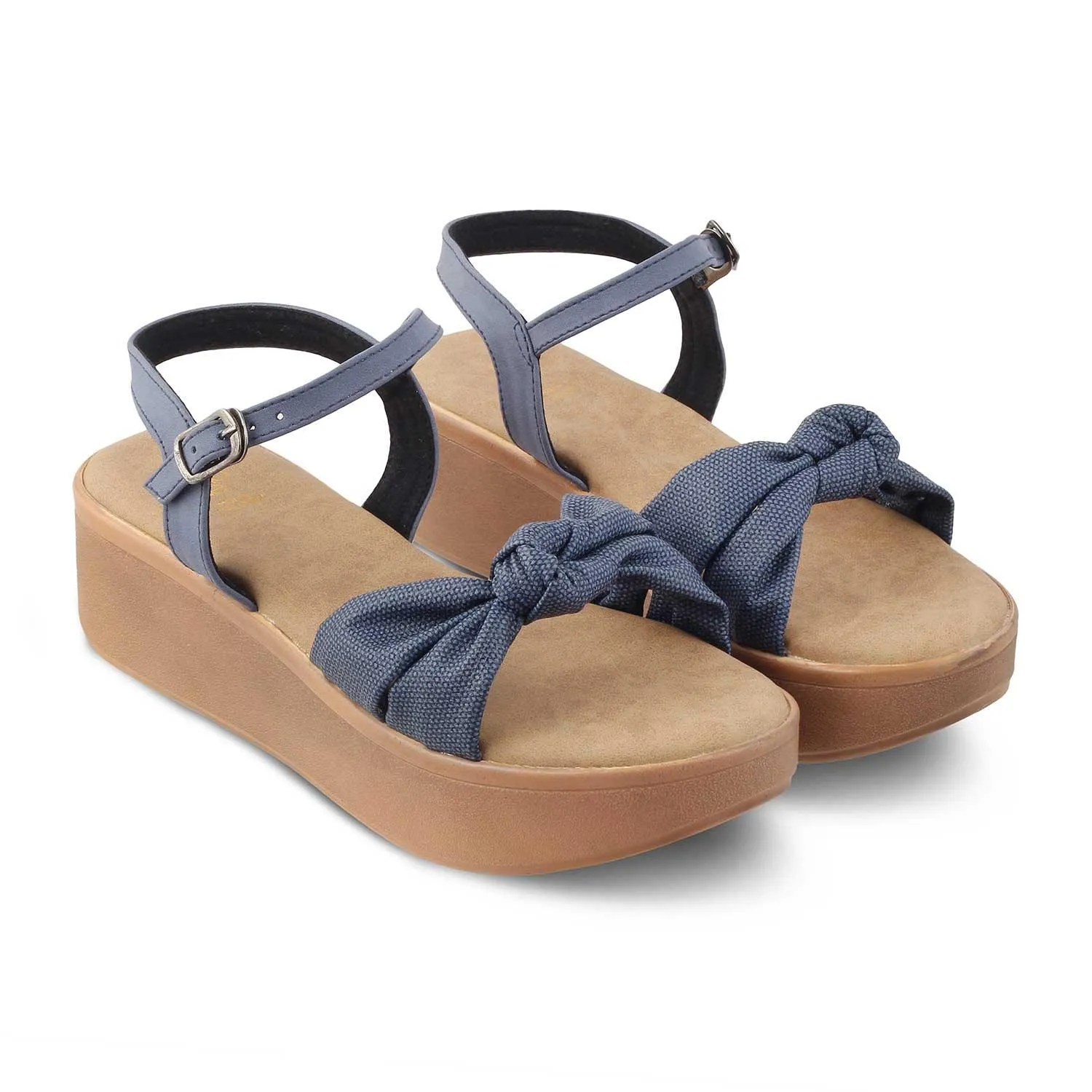 Our Brera blue women’s platform wedge sandals are the perfect blend of effortless style and comfort. These vegan-friendly wedges will become your go-to companion for any event. Pair these wedges with an off-white blouse and olive green high-waisted pants.