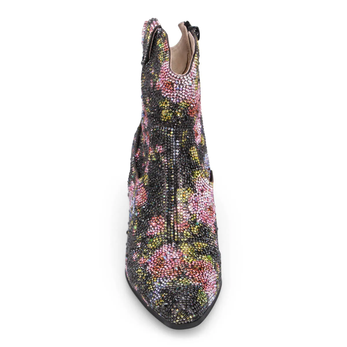 Shine brighter than the stars in these ankle boots by Django & Juliette. Wagon puts a chic twist on a western style with a diamante encrusted finish.