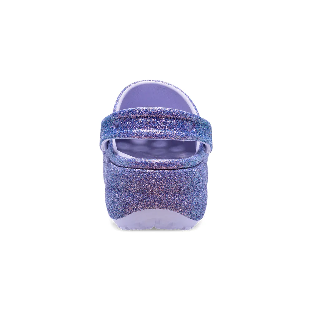 We created a style-relevant version of our Classic icon for her. Introducing the Classic Platform, featuring a heightened, contoured outsole that supports the upper you love with a slimmer, sleeker look — but there’s more. This version features a sparkly glitter treatment that changes color when you look at it from different angles. So, when you’re in the mood for a little extra boost and sparkle, style it up with the Classic Platform Iridescent Glitter Clog.
